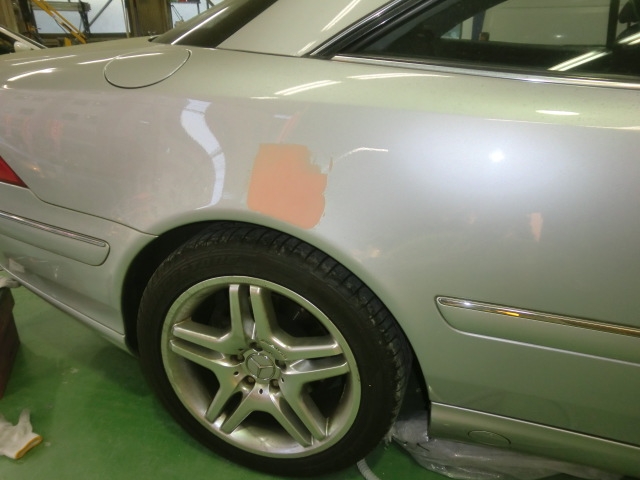 凹みの修正が終った後、薄くパテを付け十分に硬化させて研いで塗装の下地準備を行っていきます。